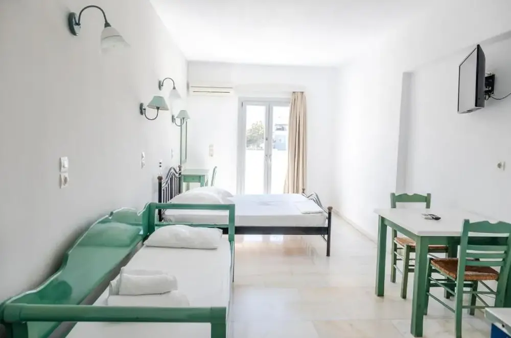 Korali Garden offers comfortable accommodations in Agios Georgios, Naxos Chora, Greece. Guests appreciate the welcoming staff and daily room cleaning services. The property features non-smoking rooms, family-friendly facilities, and accessibility options for disabled guests. With free WiFi available, visitors enjoy convenient access to digital resources. Located just 450 meters from Agios Georgios Beach, the resort provides easy access to local attractions. Nearby landmarks include the ancient water supply system of Naxos, Kouros Melanon Beach at 5 kilometers away, and the historic Naxos Castle within walking distance. Travelers can reach Paros National Airport in 24 minutes by car and Syros Island National Airport in approximately 52 minutes. The establishment also offers an airport shuttle service for added convenience.